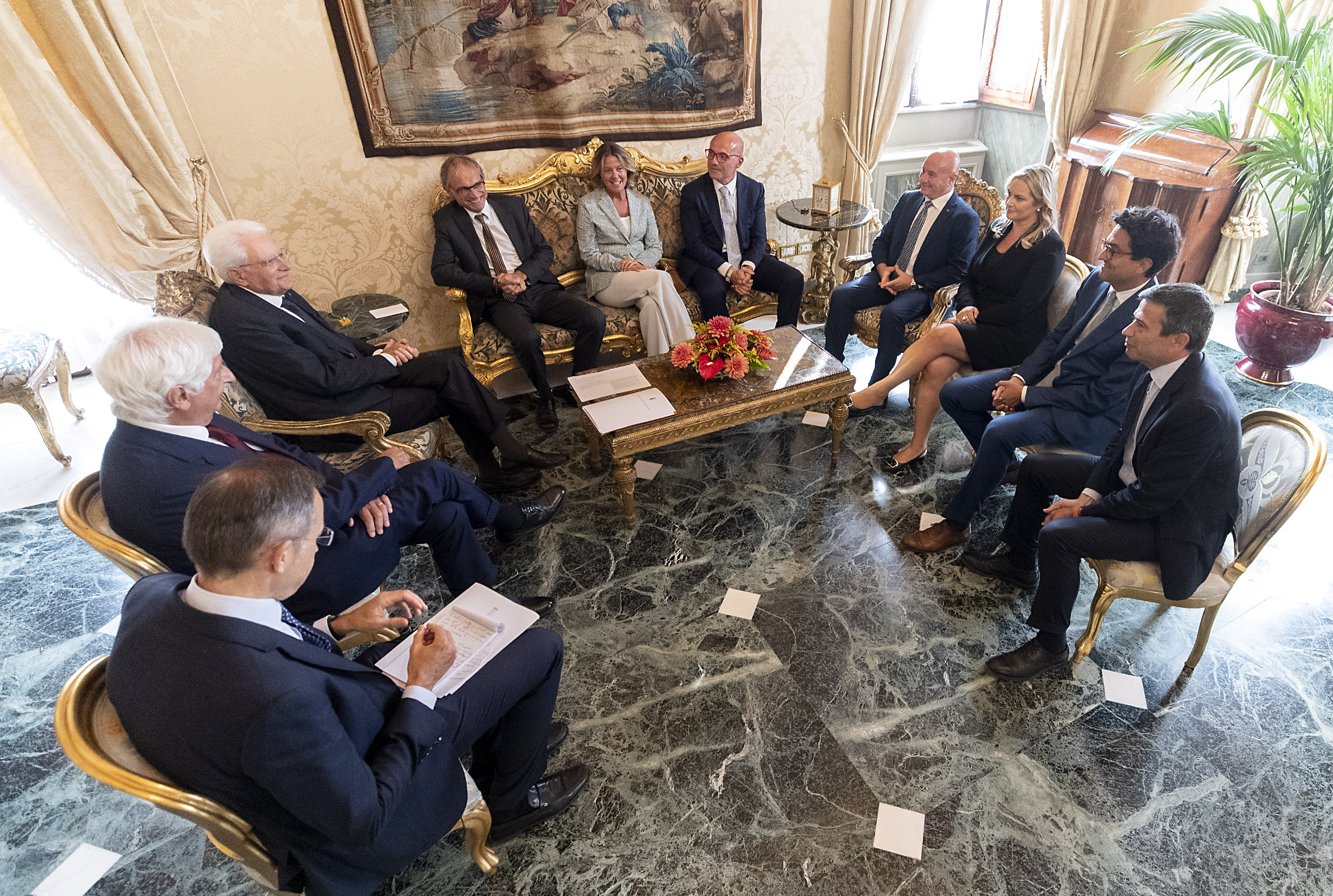 Il Presidente della Repubblica Sergio Mattarella con l’On. Avv. Manfred SCHULLIAN, Presidente del Gruppo Parlamentare Misto della Camera dei Deputati, unitamente all’On. Dott. Alessandro FUSACCHIA, Vice Presidente del Gruppo Misto e rappresentante della componente “+Europa-Centro Democratico”, all’On. Avv. Renate GEBHARD, Vice Presidente del Gruppo Misto e rappresentante della componente "Minoranze Linguistiche", all’On. Dott. Maurizio LUPI, Vice Presidente del Gruppo Misto e rappresentante della componente “Noi con l’Italia-USEI”, all’On. Beatrice LORENZIN, Vice Presidente del Gruppo Misto e rappresentante della componente “Civica Popolare AP-PSI- Area Civica” e l’On. Avv. Catello VITIELLO, Vice Presidente del Gruppo Misto e rappresentante della componente “Sogno Italia-10 volte meglio” e all’On. Antonio TASSO rappresentante della componente “MAIE – Movimento Associativo Italiani all’Estero
