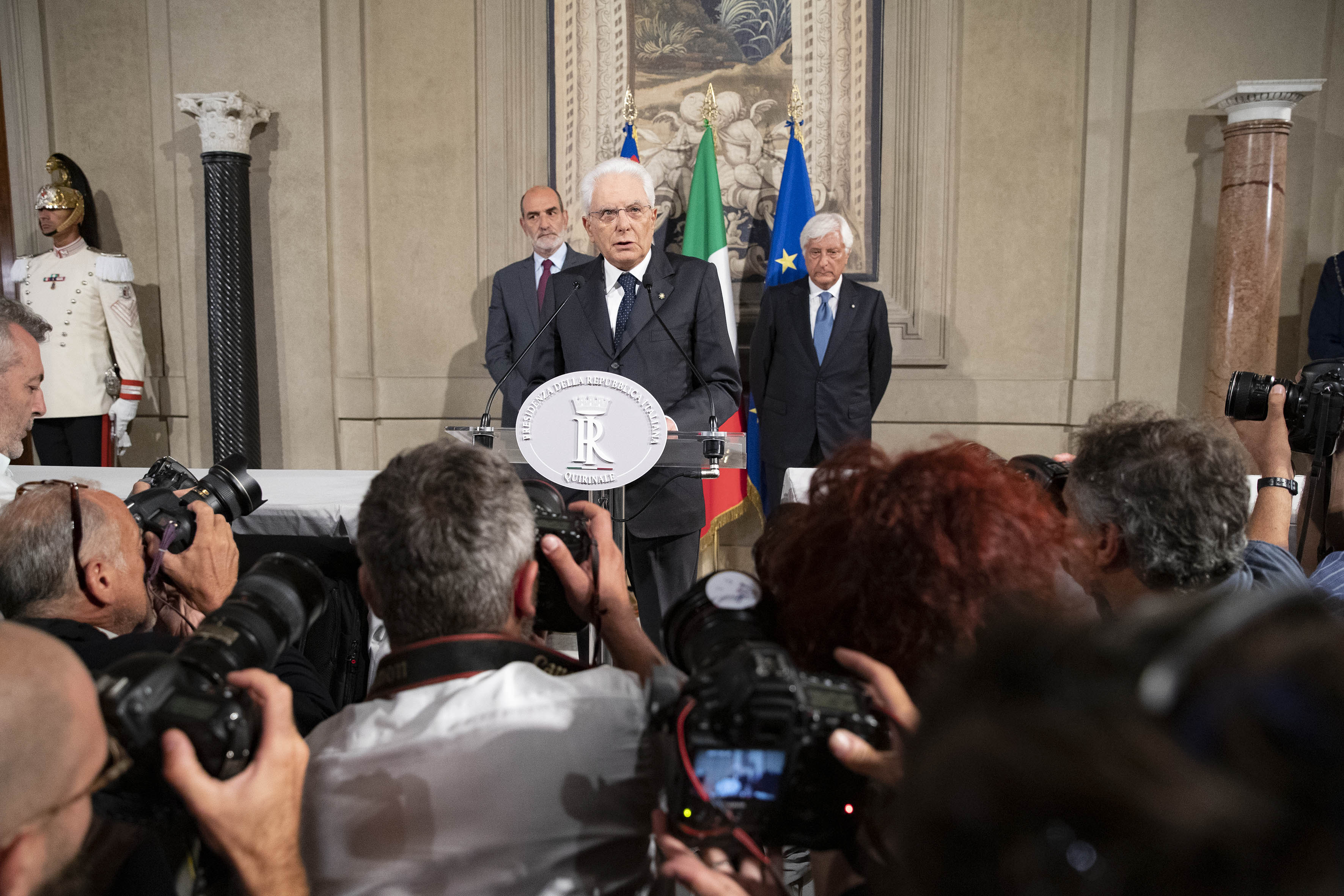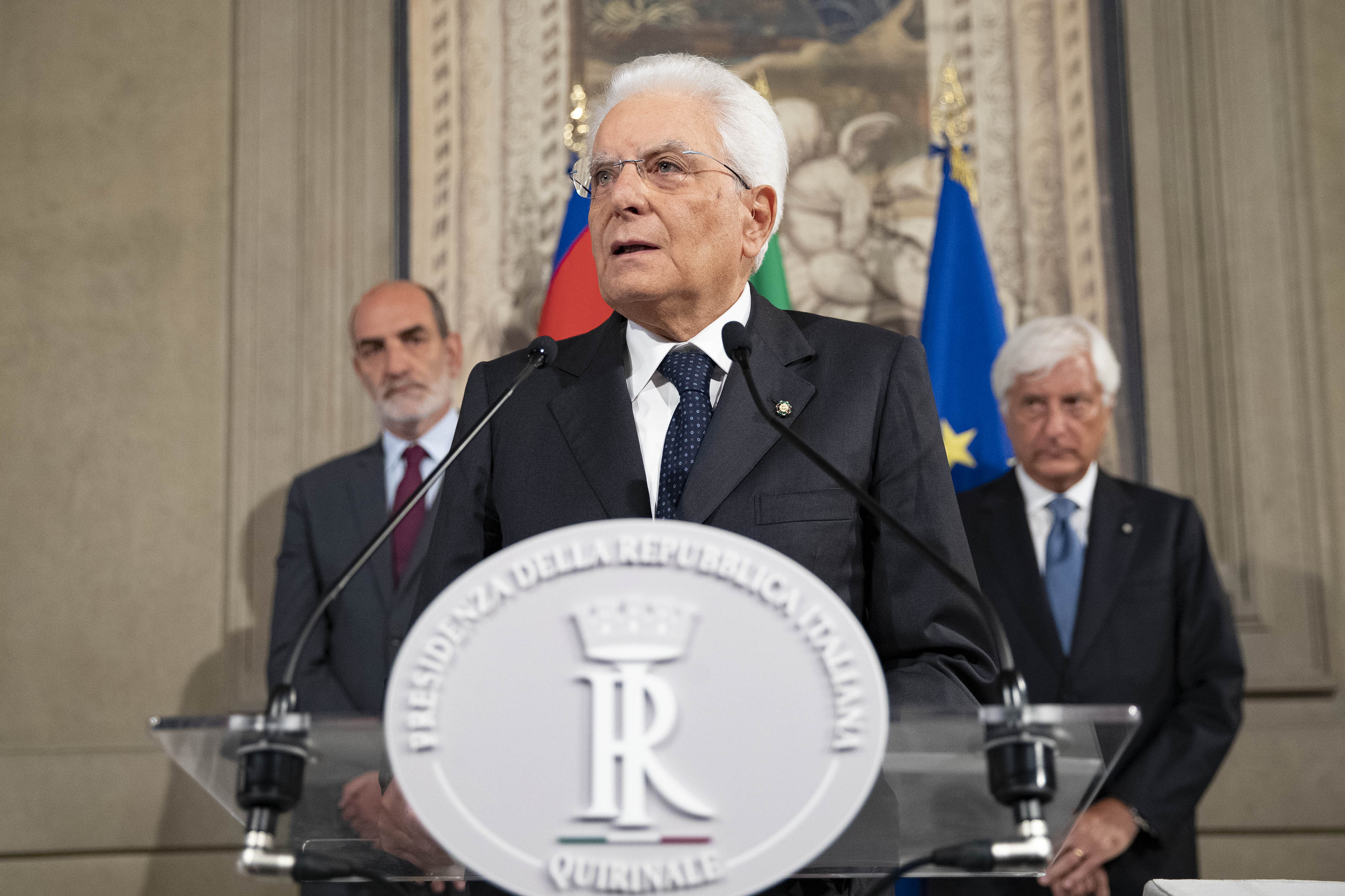 Il Presidente Sergio Mattarella al termine delle consultazioni
