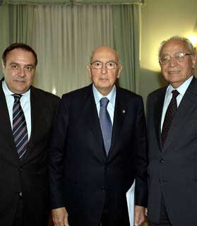 Il Presidente Giorgio Napolitano con il Vice Presidente del CSM, Virginio Rognoni ed il Ministro della Giustizia, Clemente Mastella a Palazzo dei Marescialli