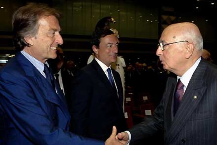 Il Presidente Giorgio Napolitano con Luca Cordero di Montezemolo, Presidente della Confindustria e Mario Draghi, Governatore della Banca d'Italia al termine della relazione annuale della CONSOB