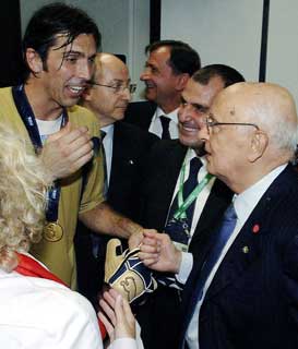 Il Presidente Giorgio Napolitano si congratula con Gianluigi Buffon