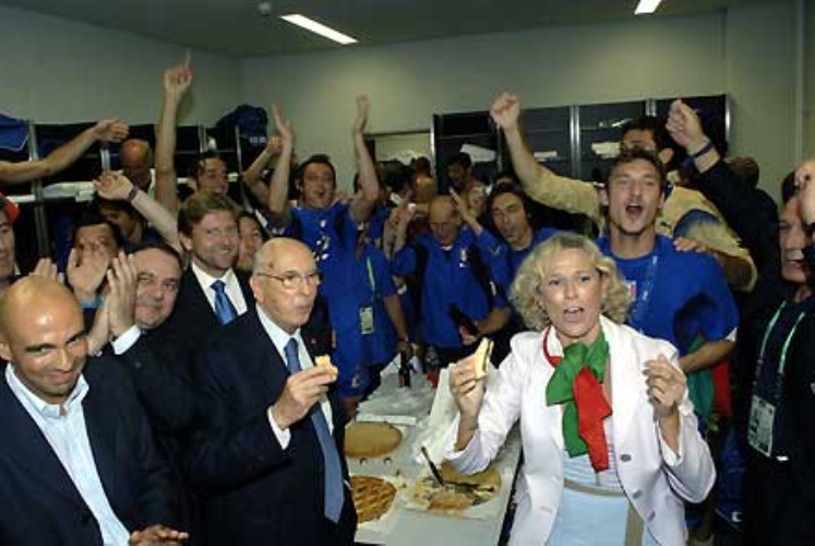 Il Presidente Giorgio Napolitano con i Ministri Melandri e Mastella in festa insieme ai Campioni del Mondo