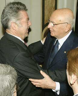 Il cordiale incontro del Presidente della Repubblica Italiana Giorgio Napolitano ed il Presidente Federale della Repubblica d'Austria, Heinz Fischer, in Prefettura