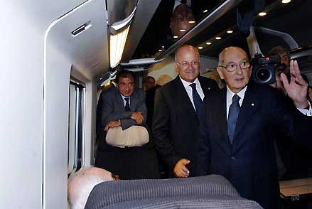 Il Presidente Giorgio Napolitano con l'Amministratore Delegato delle FF.SS Elio Catania a bordo del treno "Eurostar" per Firenze"