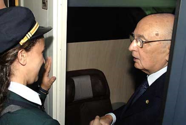 Il Presidente della Repubblica Giorgio Napolitano a bordo del treno "Eurostar", per Firenze