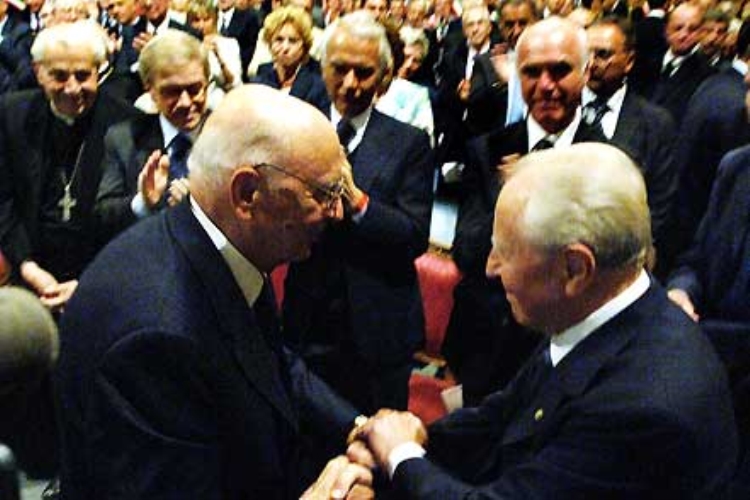 Il Presidente Giorgio Napolitano si congratula con il Presidente emerito della Repubblica Carlo Azeglio Ciampi