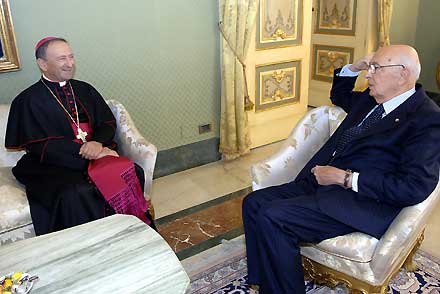 Il Presidente Giorgio Napolitano durante l'incontro con l'Arcivescovo Metropolita Francesco Cacucci