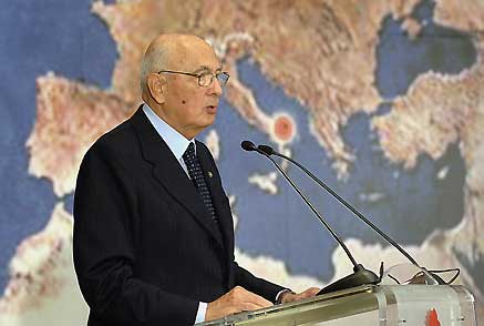 Il Presidente Giorgio Napolitano, durante il suo intervento nella sala Nicola Tridente della Fiera