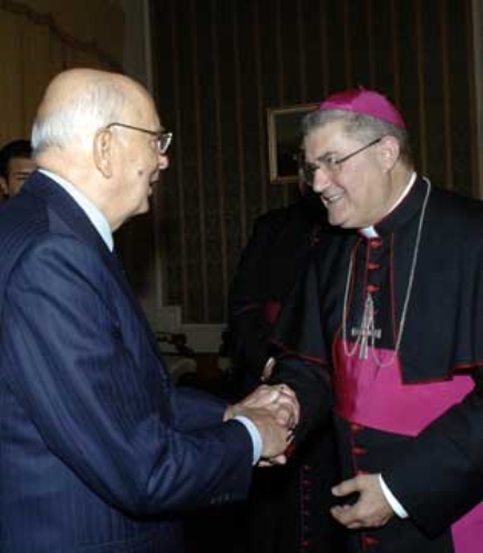 Il Presidente Giorgio Napolitano con l'Arcivescovo Metropolita Cosmo Francesco Ruppi, in occasione dell'incontro in Prefettura.