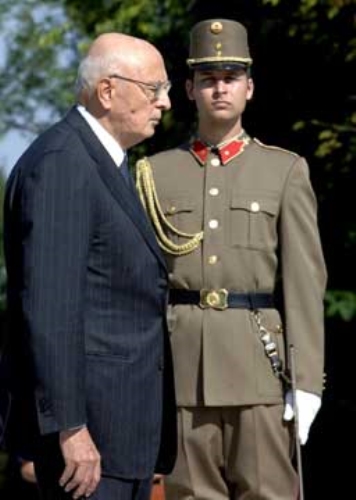 Il Presidente Giorgio Napolitano in raccoglimento davanti al Monumento ai Martiri della Rivoluzione del 1956.