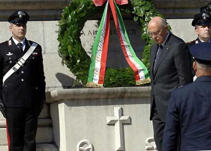 Il Presidente Giorgio Napolitano rende omaggio ai militari italiani deceduti nei campi di prigionia della Prima Guerra Mondiale.