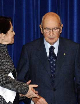 Il Presidente Giorgio Napolitano con il Vice Direttore della London School of Economics and Political Science, Sarah Worthington, al termine dell'allocuzione.