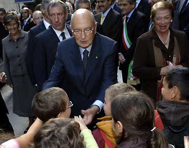 Il Presidente Giorgio Napolitano con la moglie Clio all'uscita dal Museo Egizio.