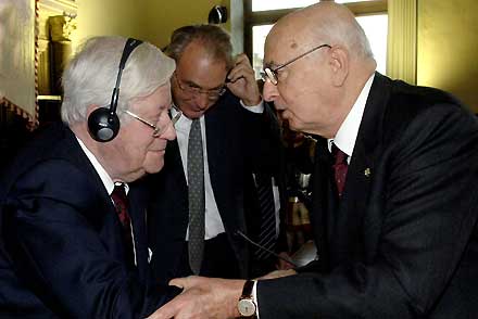 Il Presidente Giorgio Napolitano con Helmut Schmidt al convegno Internazionale sull'Europa