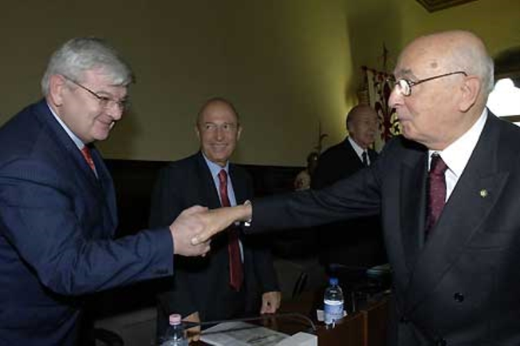 Il Presidente Giorgio Napolitano con Joschka Fischer al convegno Internazionale sull'Europa