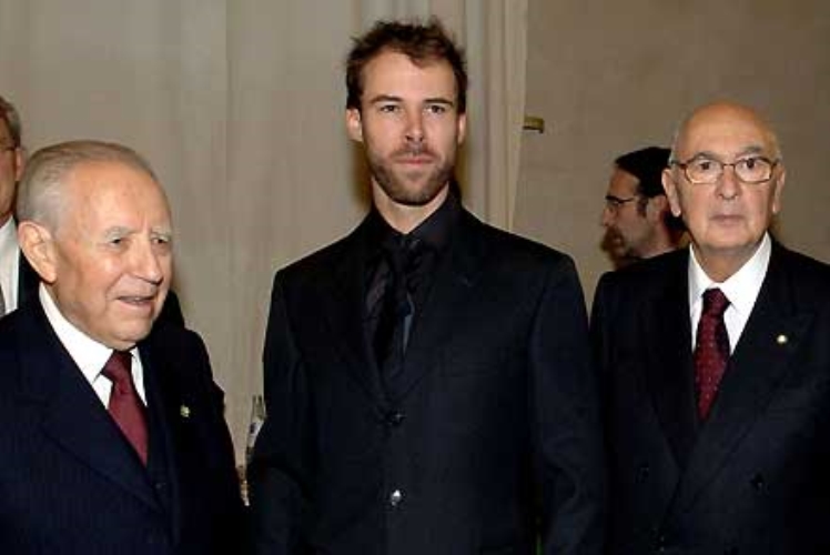 Il Presidente Giorgio Napolitano con il Presidente Emerito della Repubblica e Senatore a Vita, Carlo Azeglio Ciampi insieme a Thieu Besselink, il giovane ricercatore olandese che ha fatto l'appello in favore della costruzione europea