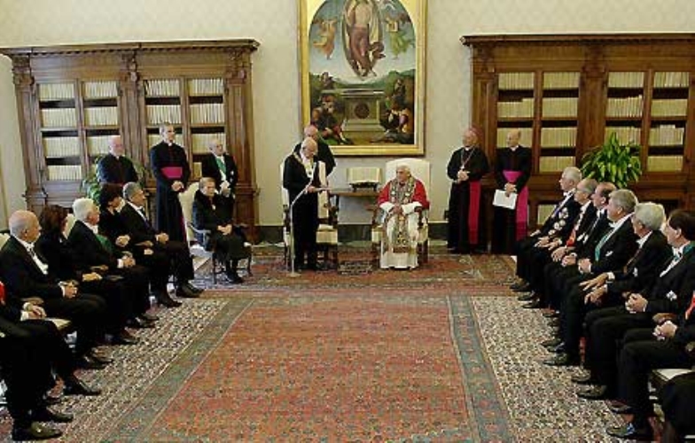 Il Presidente Giorgio Napolitano, con accanto la moglie Clio, rivolge al Santo Padre Benedetto XVI il suo discorso, in occasione della Visita Ufficiale in Vaticano.
