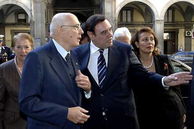 Il Presidente Giorgio Napolitano con la moglie Clio, il Ministro della Giustizia Clemente Mastella e la moglie Sandra, all'arrivo a Palazzo di Giustizia di Castel Capuano