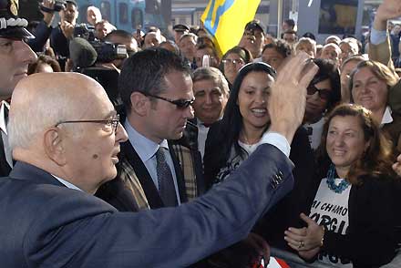 Il Presidente Giorgio Napolitano al suo arrivo alla stazione centrale