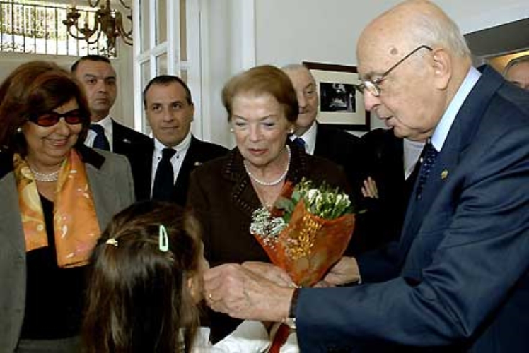 Il Presidente Giorgio Napolitano con la moglie Clio e la Signora Marra all'arrivo a Villa De Nicola