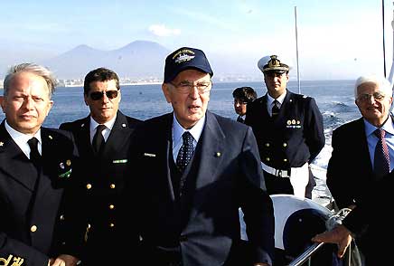 Il Presidente Giorgio Napolitano con il Segretario Generale del Quirinale, Donato Marra durante il trasferimento da Ercolano al porto
