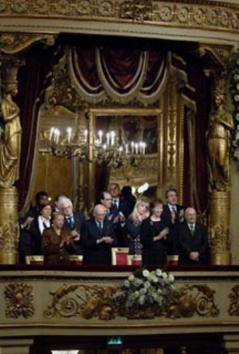 Il Presidente Giorgio Napolitano con la moglie Clio al Teatro alla Scala in occasione del concerto per il 50° anniversario della morte di Arturo Toscanini