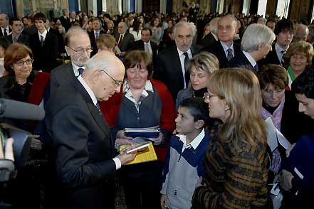 Il Presidente Giorgio Napolitano durante la cerimonia della celebrazione del "Giorno della Memoria