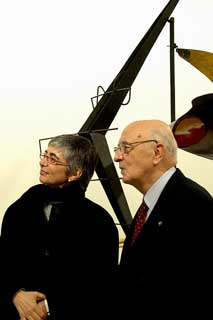 Il Presidente Giorgio Napolitano, nella foto con la Direttrice del Museo Nazionale Centro di Arte "Reina Sofia", Ana Aguilar durante la visita al Museo