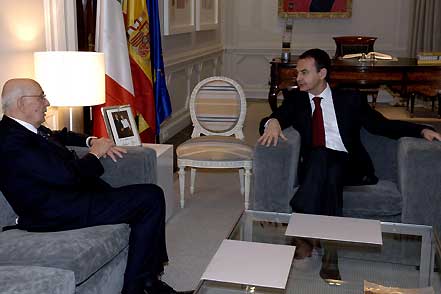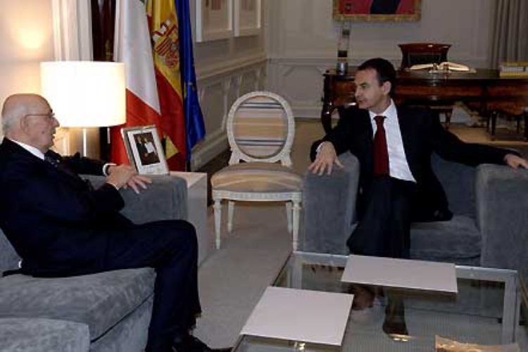 Il Presidente Giorgio Napolitano con Josè Luis Zapatero, Presidente del Governo del Regno di Spagna durante il colloquio alla Moncloa