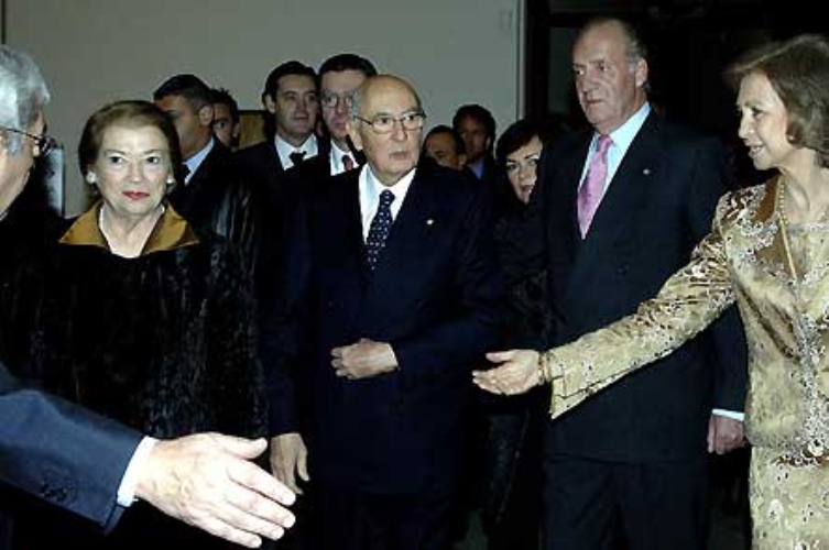 Il Presidente Giorgio Napolitano con la moglie Clio e LL.MM. il Re Juan Carlos e la Regina Sofia all'inaugurazione della Mostra sul Tintoretto al Museo del Prado