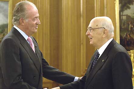 Il Presidente Giorgio Napolitano accolto da S.M. il Re Juan Carlos alla Zarzuela