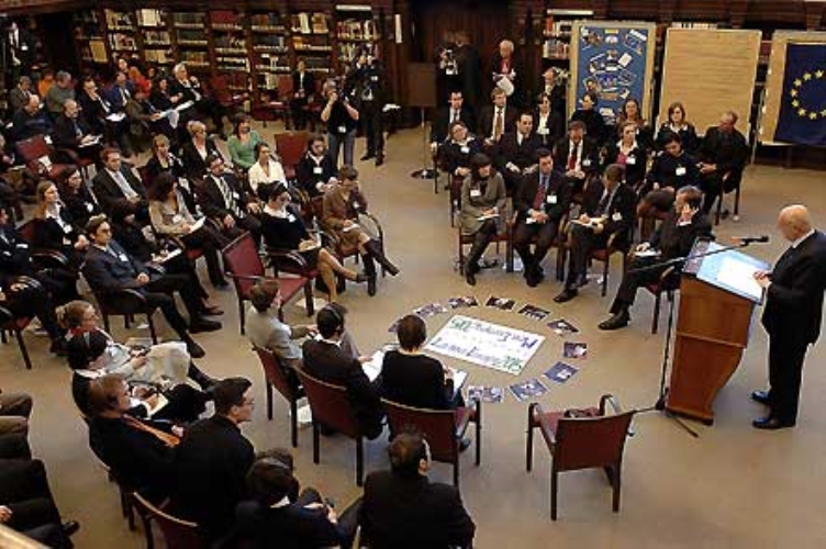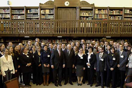 Il Presidente Giorgio Napolitano ed il Presidente della Repubblica Federale di Germania Horst Kohler con una rappresentanza di studenti dell'Università che hanno dato vita al dibattito sull'Europa