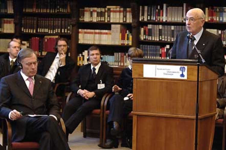 I Presidenti della Repubblica Italiana e della Repubblica Federale di Germania, Giorgio Napolitano e Horst Kohler firmano il Libro d'Oro dell'Università