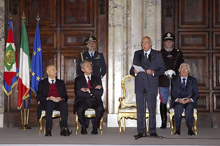 Il Presidente Giorgio Napolitano durante il suo intervento in occasione della cerimonia di consegna delle decorazioni nel Giorno del Ricordo