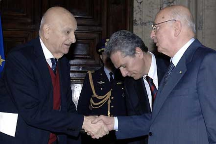 Il Presidente Giorgio Napolitano con Paolo Barbi e Francesco Rutelli in occasione del "Giorno del Ricordo".