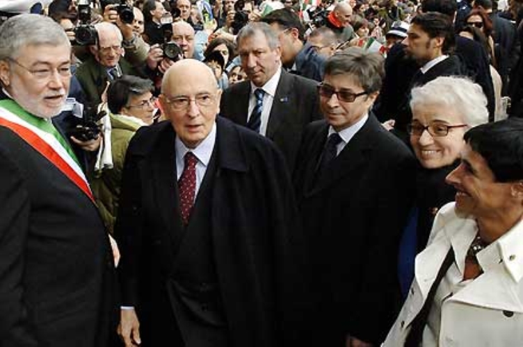 Il Presidente Giorgio Napolitano, accolto dalle Autorità Istituzionali all'arrivo a Palazzo D'Accursio