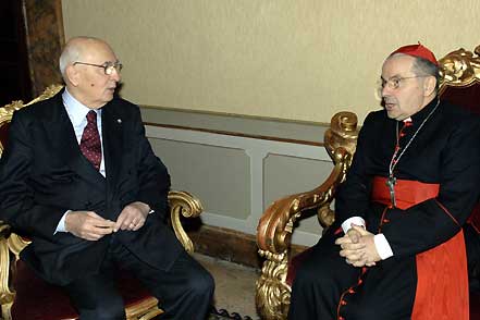 Il Presidente Giorgio Napolitano a colloquio con il Cardinale Carlo Caffarra