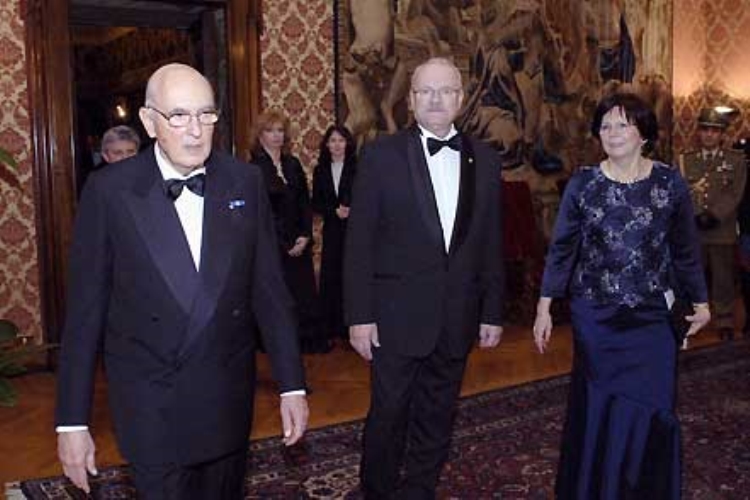 Il Presidente Giorgio Napolitano, Ivan Gasparovic, Presidente della Repubblica Slovacca e consorte al termine del pranzo Ufficiale