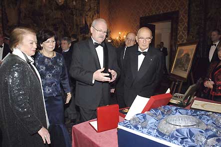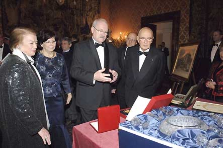 Scambio di doni tra il Presidente della Repubblica Giorgio Napolitano e Ivan Gasparovic, Presidente della Repubblica Slovacca