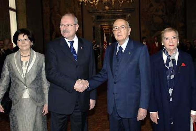 Il Presidente Giorgio Napolitano con Ivan Gasparovic, Presidente della Repubblica Slovacca, e le rispettive consorti.