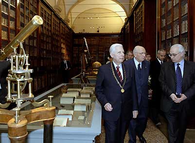 Il Presidente Giorgio Napolitano con il Rettore dell'Università degli Studi, Ugo Calzolari, durante la visita all'Ateneo