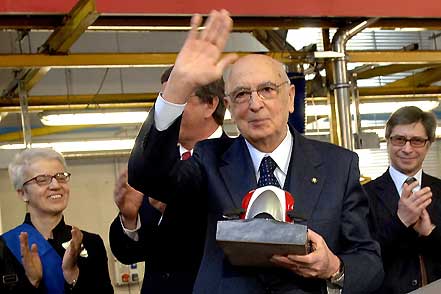 Il Presidente Giorgio Napolitano, durante la visita alla Ducati