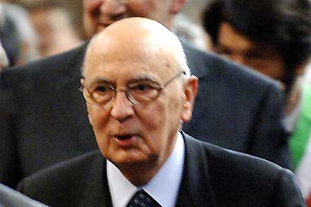 Il Presidente Giorgio Napolitano all'arrivo nel Salone San Giovanni per l'incontro con le Cariche Istituzionali