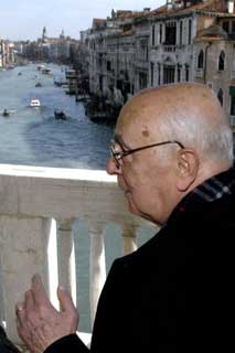 Il Presidente Giorgio Napolitano sullo sfondo il Canal Grande, durante la visita all'Università degli Studi Cà Foscari