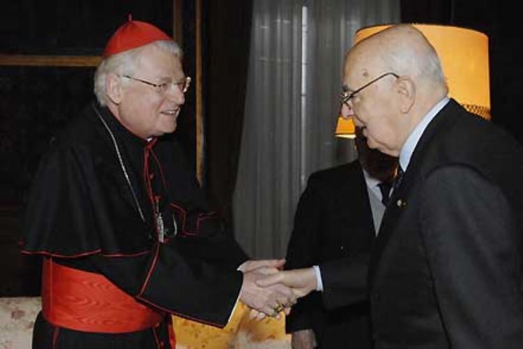 Il Presidente Giorgio Napolitano con il Patriarca Arcivescovo di Venezia S.Em. Rev.ma il Cardinale Angelo Scola