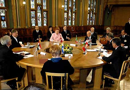 Un momento dei lavori dell'incontro dei Capi di Stato firmatari dell'articolo "Uniti per l'Europa" del 15 luglio 2005 nella capitale della Lettonia.