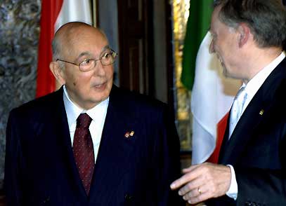 Il Presidente Giorgio Napolitano durante la breve passeggiata in città.