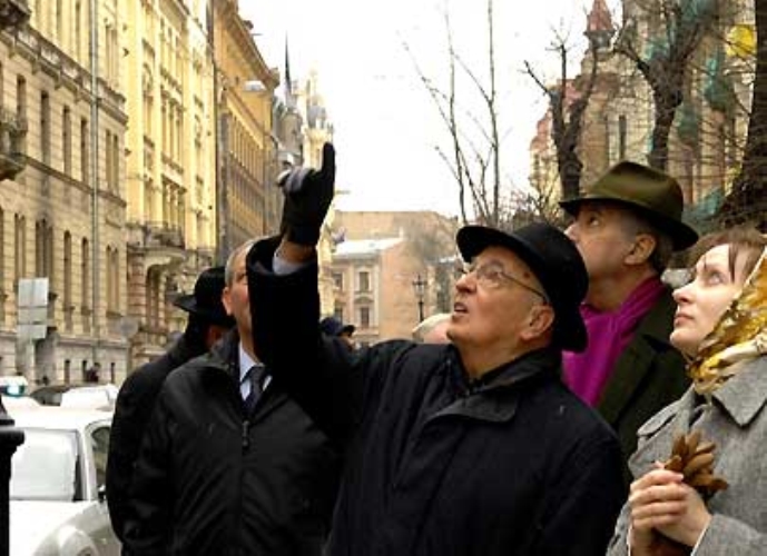 Il Presidente Giorgio Napolitano durante la breve visita al quartiere Liberty della città.