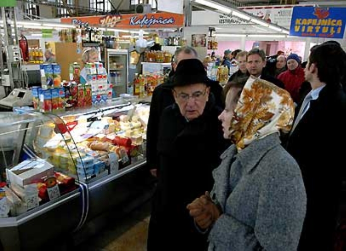 Il Presidente Giorgio Napolitano durante la visita, in forma privata, al mercato della città.