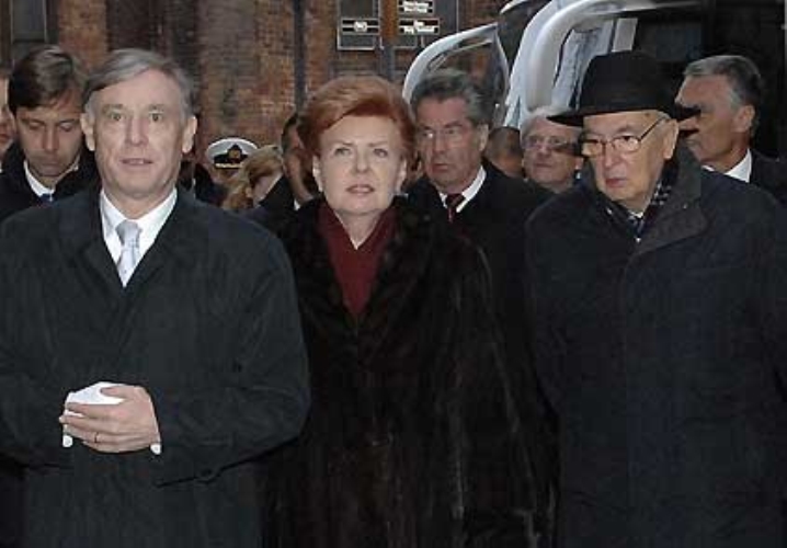 Il Presidente Giorgio Napolitano con Vaira Viche-Freiberga, Horst Kohler ed Heinz Fischer all'arrivo alla Chiesa di St. John.